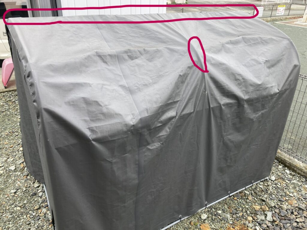 それで気になっていたのですが、サイクルハウスのフレーム枠の間隔が広く、雪が積もると天幕がまるで谷のように凹んで雪が溜まり、雪の重みで天幕がフレームに強く引っ張られます。