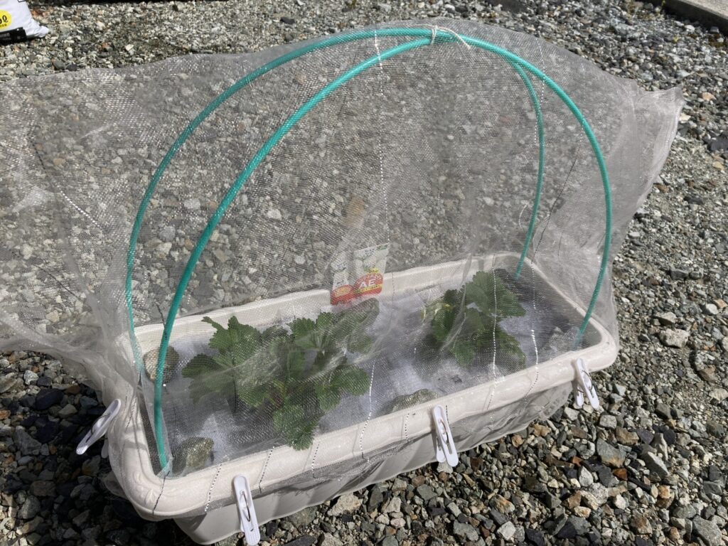 なおイチゴの天敵アザミウマは、残念ながら網目1mmの防虫ネットでは全く防げません。